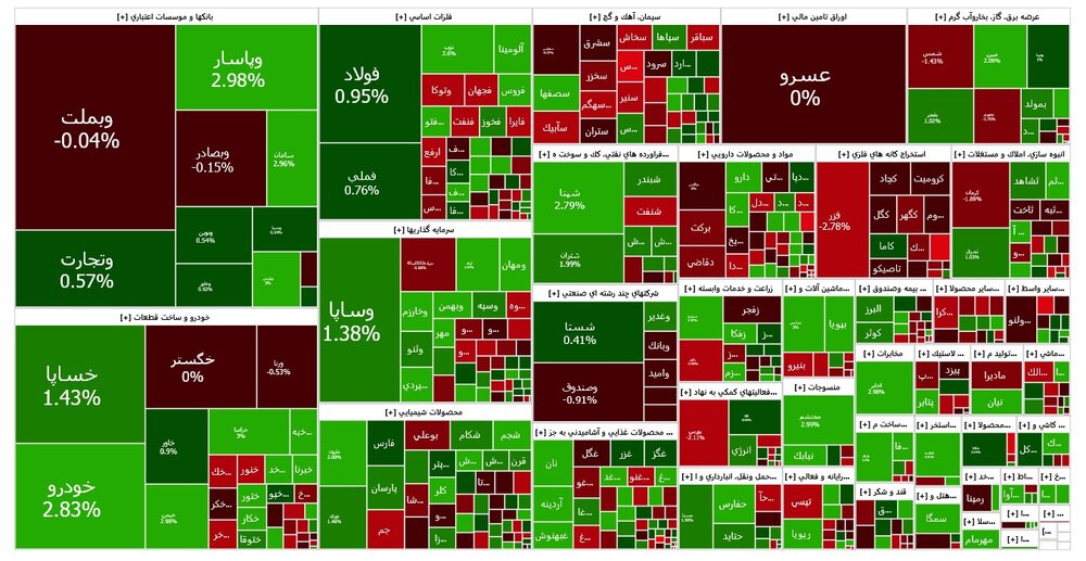 وپاسار بیشترین تاثیر مثبت را بر شاخص بورس داشت اما جم و وبملت اثر منفی ایجاد کردند. از نمادهای پرتراکنش نیز میتوان به ولنوین، خساپا و خودرو اشاره کرد.